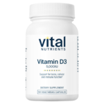 • Supports bone health* • Promotes calcium absorption* • Supports colon health* Vitamin D3 is a fat-soluble vitamin that helps maintain strong bones and teeth by supporting healthy serum calcium levels.* It does this by promoting absorption of calcium in the digestive tract, as well as reducing calcium loss through urine.* Additionally, Vitamin D supports colon health, and may promote a healthy immune system.* Vitamin D occurs naturally in very few foods, and although it can be produced in the body, obtaining adequate skin absorption from sun exposure can be difficult year round.* Vital Nutrients offers supplemental Vitamin D in the active form D3 (also known as cholecalciferol).* Packaging and labels may vary."