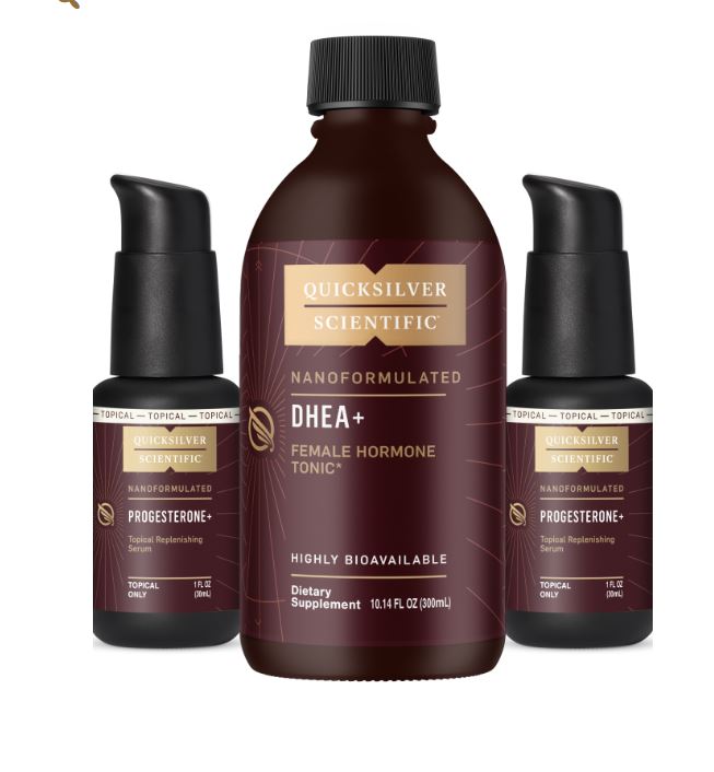 Nanoformulated DHEA+ Female Hormone Tonic combines micronized DHEA, pregnenolone, diindolylmethane, chrysin, and herbal extracts to support and balance hormone levels in women during perimenopause, menopause, and postmenopause.