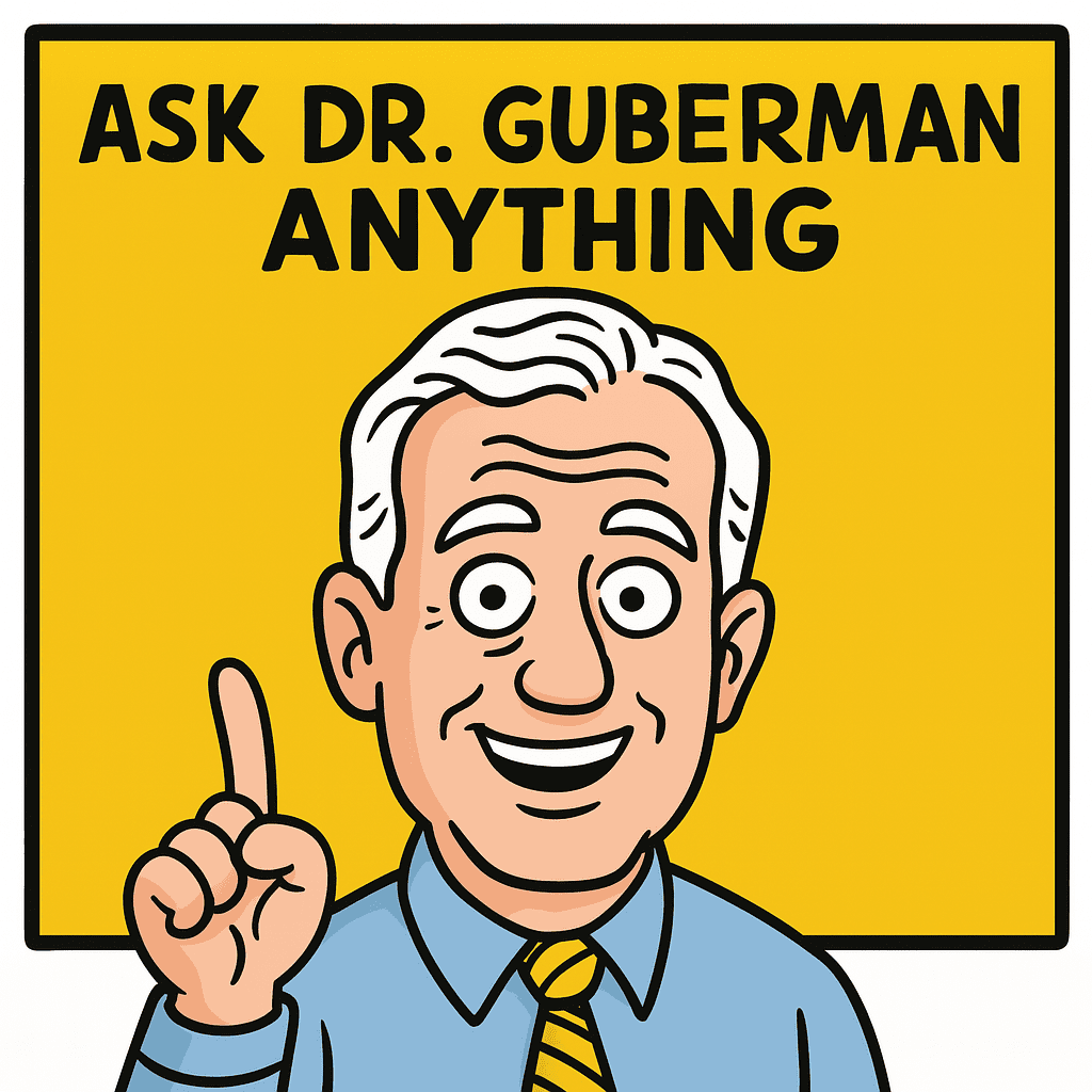Dr. Guberman offers full telehealth consultations—but he’s also happy to answer quick questions. Have one? Just click the cartoon of Dr. G above.